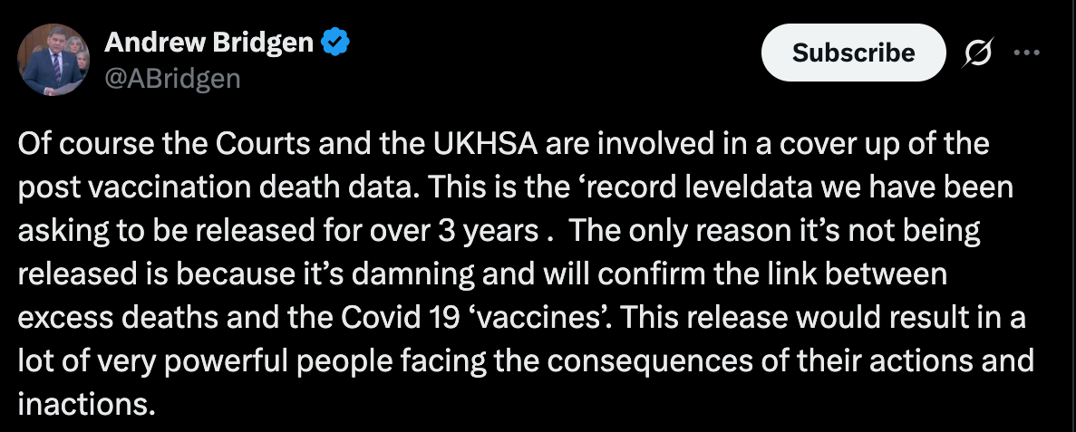 Even more concerning:The same dataset — mapping vaccination dates to dates of death — was provided to pharmaceutical companies but NOT released to the public. UKHSA also claimed that publishing the numbers could “lead to misinformation” or impact vaccine uptake.