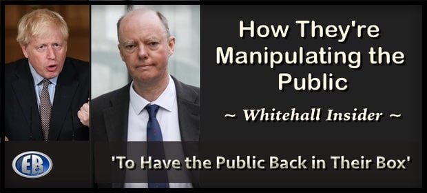 A Whitehall source directly linked to the Covid Response has said that the UK Government have already structured a detailed plan designed to neutralise each stage of lockdown-easing, including the compliance of media outlets to help spread fear.The Whitehall source has said that he has been “increasingly concerned” with how the Government are behaving, and that their “relationship with the truth” is now not even on nodding terms. The latest plan will involve a series of ‘crises’ around drug supply, mutant strains, and third waves, specifically choreographed to condition the public for further lockdowns and vaccine passports.The plan, that according to the source is designed to take us to September 27th 2021, is to be released in stages over the summer months and, according to the Whitehall source, is already ‘well underway’. .On March the 8th, the first milestone of the roadmap was implemented, with school children finally returning to class. The following day, Chris Whitty gave a pre-written speech to the Commons that said schools reopening would cause another surge in the virus and ended it with “Let me be clear, many, many more people will die before this is over,” the soundbite obligingly repeated on every news outlet, with BBC news having it on-loop all day..On March the 29th, the second milestone of the roadmap was implemented. The Government said – “The evidence shows that it is safer for people to meet outdoors rather than indoors”. This is why from the 29th March, when most schools start to break up for the Easter holidays, outdoor gatherings (including in private gardens) of either 6 people (the Rule of 6) or 2 households will also be allowed, making it easier for friends and families to meet outside.The next day (March 30th), the AstraZeneca Vaccine was again stopped due to blood clot fears, despite the medicine’s regulator clearing it only the previous week. Whilst Boris Johnson repeated what he’d said the previous week that the mutated virus on the continent would inevitably “wash up on our shores”..On April 19th, the third milestone saw pub gardens, and non-essential shops reopen. Followed immediately by news of a second vaccine being halted for fear it was causing blood clots and the discovery of the South African mutation said to be able to avoid them anyway..The next milestone is due on May 17th with the Government relaxing social contact rules further and the opening of indoor venues. This will be followed by a story that the mutation is ‘more deadly than first thought’ and that young people are now also vulnerable to it, accompanied by the result of the vaccine passport trials have shown that they have a ‘positive effect on virus reduction’..The final milestone is due on June 21st where ALL restrictions were promised to be lifted. This will not be allowed to happen. Vaccine passports / Track and Trace will be mandatory, as will masks and social distancing. The entire week of the 21st will be taken up by a third wave, which will suddenly be ‘rampant’, and this will be attributed to a new variant which they will declare is more deadly than the previous strains of Covid allegedly doing the rounds. This will be accompanied with yet more issues with vaccine supplies. Authorities will declare that one of the vaccines is effective against the deadlier strain, but a ‘problem’ with its manufacture will emerge. (ER: Would this be driving everyone to Pfizer? And then preparing the public for REAL mass casualties as a result of taking the evidently harmful vaccine(s), to come later?)The Whitehall source went on to say –