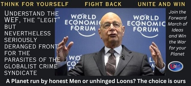 To that end the following article from The Expose is a help. It gives you some useful insight into the WEF, the “legit” (but nevertheless seriously deranged) front for the parasites of the globalist crime syndicate.