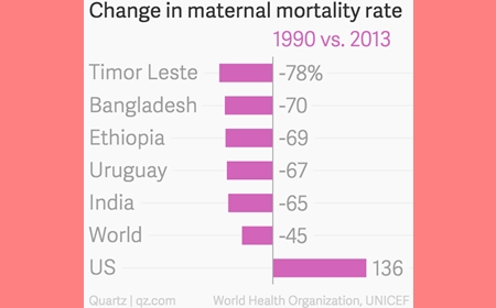 On May 10, – Mother’s Day, The World Health Organization released their report on “Trends in Maternal Mortality 1990 – 2013” citing that in the last quarter century, the rate at which women die of pregnancy-related causes has dropped 45%, according to a World Health Organization (WHO) report (pdf), to just 210 maternal deaths per 100,000 live births in 2013.