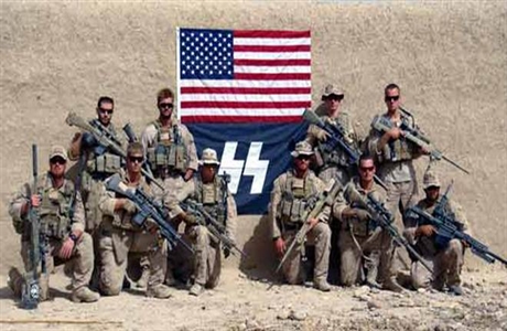And not just a “source of pride” do these Marine Raider “Jesus Killers” have with the Nazis “death’s head skull”, this report continues, but also with the runic “SS” insignia of the dreaded Schutzstaffel (secret police) that were used from the 1920s to 1945 on Schutzstaffel flags, uniforms and other items as symbols of various aspects of Nazi ideology and Germanic mysticism…and which this exact “hit team” posed with, in 2010, when they were deployed to Afghanistan.