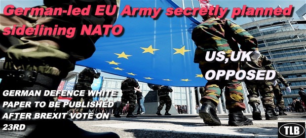Germany is pushing for progress towards a European army by advocating joint headquarters and shared military assets. A secret German defence white paper calling for the acceleration of the formation of a joint European Union Army has been leaked, revealing German ambitions to side-line NATO by creating a pan-EU force. The paper had seen its release date pushed back until after the British referendum on EU membership, apparently over fears that it would play into the hands of those advocating a leave vote. But a copy has been handed to the Financial Times, revealing the scale of Germany’s ambition for a pan-EU Army – led by Germany.