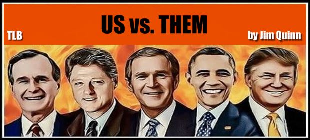 Anyone who frequents Twitter, Facebook, political blogs, economic blogs, or fake news mainstream media channels knows our world is driven by the “Us versus Them” narrative. It’s almost as if “they” are forcing us to choose sides and believe the other side is evil. Bill Hicks died in 1994, but his above quote is truer today then it was then. As the American Empire continues its long-term decline, the proles are manipulated through Bernaysian propaganda techniques, honed over the course of decades by the ruling oligarchs, to root for their assigned puppets.