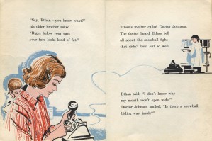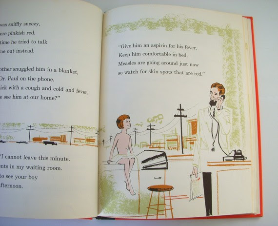 The final set of images are from a series of children’s medical books that would explain that the childhood illnesses were nothing to be afraid of. It scares me to think just how much times have changed. Books in the series were Michael Gets the Measles, Peter Gets the Chickenpox, and Dear Little Mumps Child. All three books were by Marguerite Rush Lerner, M.D. Notice how none of the books include a death watch…
