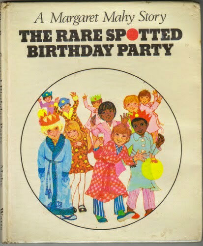 The first image is the cover from The Rare Spotted Birthday Party (1974) by Margaret Mahy. This is a children’s book about a small boy who is sad because the measles are going around and he might miss his birthday party. His mother decides to invite every spotty kid he knows and have a surprise birthday party for her son. Click on the link to view the book in its entirety.