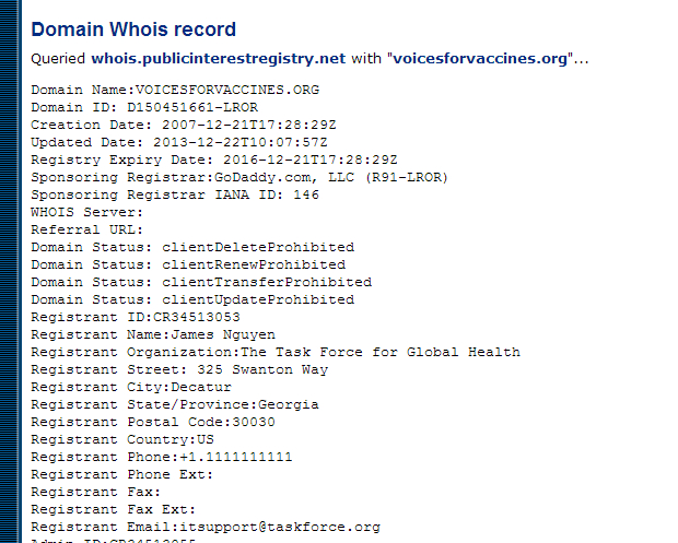 You should know that the Voices for Vaccines website falls underneath the Task Force “umbrella.” This means that obviously Director Alan Hinman takes his marching orders from a higher authority.