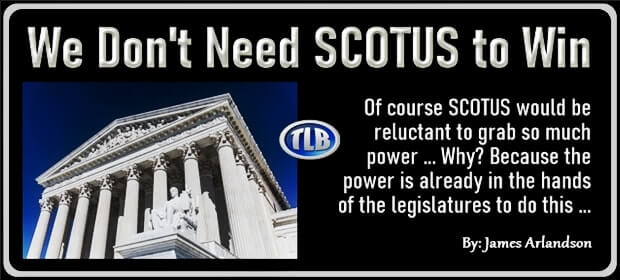 This article (We Don’t Need SCOTUS to Win) originated on American Thinker and is republished on this TLB site under “Fair Use” (see project disclaimer below) with attribution to the articles author James Arlandson and the website americanthinker.com.