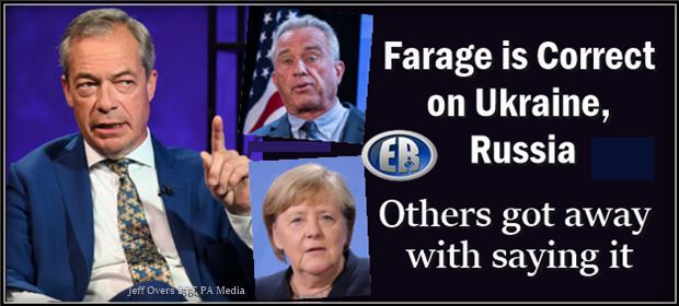 ER Editor: We smell the utility of Nigel Farage in this story as regards the bigger picture. Like Merkel and Francois Hollande’s similar comments on Minsk (the Minsk Accords were signed in bad faith by the West because peace was never the intention in the Donbass; Ukraine was simply being given time to re-arm itself against Russia); like RFK Jr. (see below), and Putin himself. Who put these people up to telling some damning truths, truths which got Russia to issue an arrest warrant for Francois Hollande, former president of France?