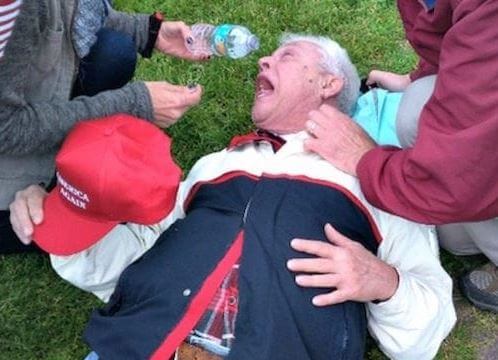A man was pepper-sprayed by Antifa for wearing a MAGA hat.