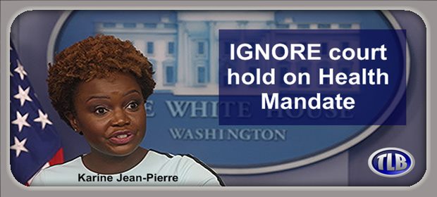 (TLB) Header featured image (edited) credit: White House deputy press secretary Karine Jean-Pierre urged American companies to ignore court hold on vaccine mandate, November 8, 2021. © REUTERS/Leah Millis