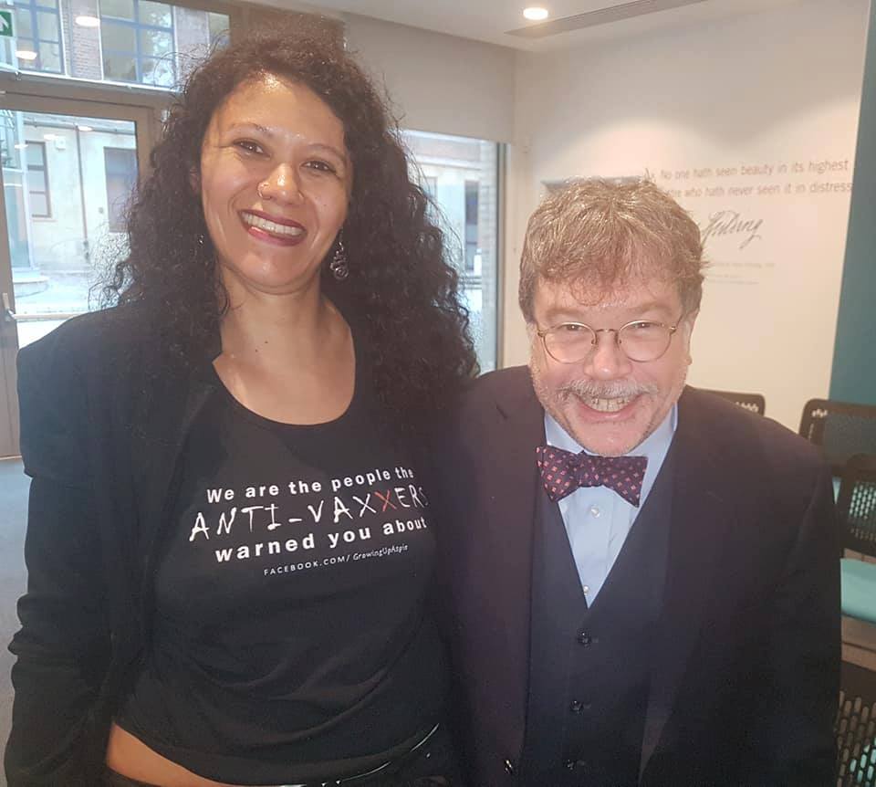 In the photo above, she can be seen linking arms with journalist Brian Deer, the freelance reporter subsidized by the Murdoch family, to attack the research work of Dr. Andrew Wakefield.