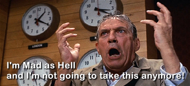Where is Howard Beale when we need him the most? Look in the mirror, America, YOU are Howard Beale and it is time to get as mad as hell!