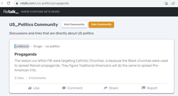 “The reason our leftist FBI were targeting Catholic Churches, is because the Black churches were used to spread Marxist propaganda. They figure Traditional Americans will do the same to spread Pro-American info.”