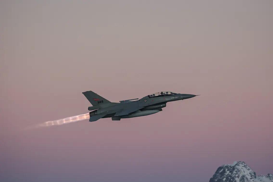 An F-16 aircraft flies above Norway on Jan. 3, 2024. (Jan Langhaug/NTB/AFP via Getty Images)