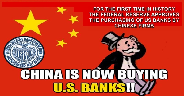 In order to keep its head about water for just one more day, the Federal Reserve has now permitted Chinese-controlled banks to take stakes in US banks. This is a nefarious invasion of the U.S. economy. Subsequently, we have witnessed a major shift in the percentage of the U.S. debt owned by Chinese vs. the Federal Reserve. This is the beginning of the end for the dollar, the U.S. economy, your standard of living, your assets, your freedoms and for many of you, your very lives.
