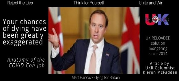 Imagine a day when, say, 1000 tests are done and, say, there are 150 positives, which the government then touts as “new cases”. But, per Hancock, there are 1% false positives, so of those 1000 tests, 100 of them are false positives, yet they are counted as “new cases”. So deduct the false “new cases” from the declared number of 150 and you get 5o. Try this out on any one day: take the number of tests done, then calculate 1% of those, which will give you the number of false positives one can expect. The government, although it knows a large proportion of “new cases” are false, does not deduct the false positives from the overall figure so do their job for them and deduct those false positives from the number of “new cases” and you get a more reliable number – a number that is FAR less scary.